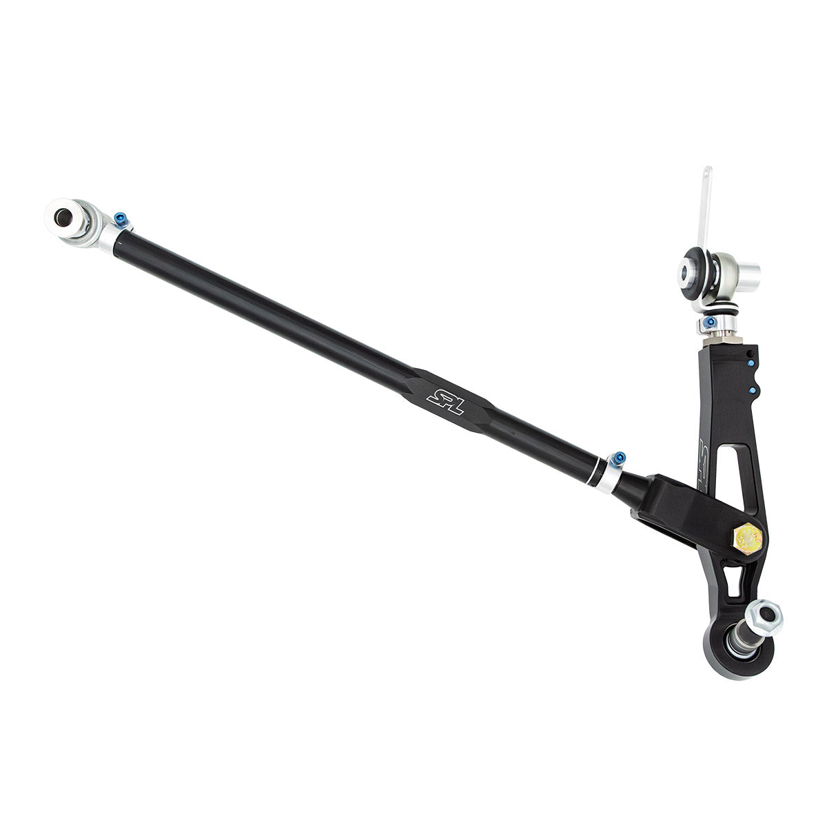 SPL Parts Billet Rear Lower Control Arm (RLCA) and Trailing Links provide track width, camber, caster, roll center and anti-squat adjustment. This is the ultimate tool for setting up the handling of your Porsche Boxster or Cayman chassis for racing, track or street use. Kit includes Black Anodized CNC machined Billet 6061-T6 Aluminum Lower Control Arms and Gun Drilled 2024 Aluminum Trailing Links. Litronic headlight compatible.