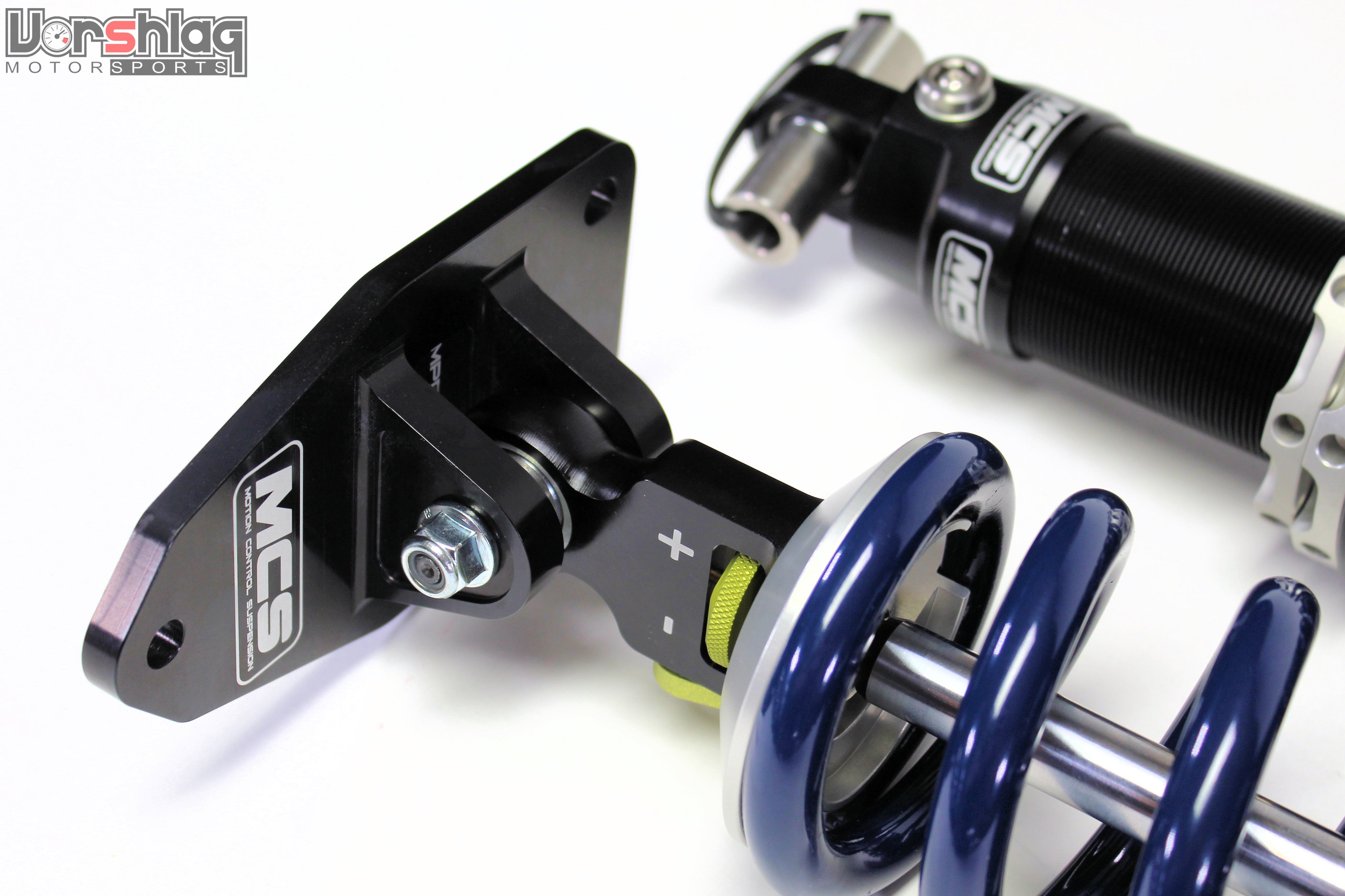 CAMBER PLATES : We highly recommend Vorshlag camber plates be used with MCS damper kits. You can easily adjust camber track side with Vorshlag camber plates. Over-sized spherical bearings are designed to withstand the rigors of street and track abuse. All components are plated for maximum corrosion resistance and long life. Please see the product entries on this website for more information about the Vorshlag camber plates and spring perches. Ordering this option includes the associated Vorshlag upper spring perches made to work with these plates, smaller diameter coilover springs and MCS struts.